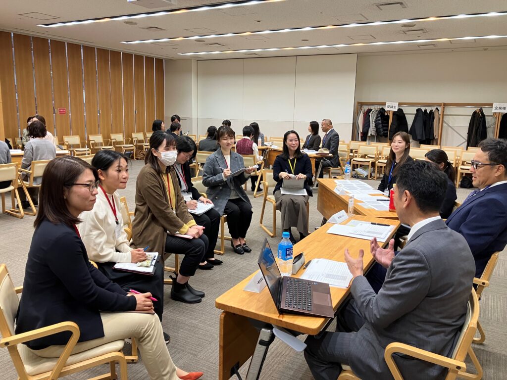 事前に企業研究を行っていた受講生は、働き方や仕事内容について準備した質問を企業担当者に投げかけ、企業の方も一人ひとりに丁寧に対応してくださいました。